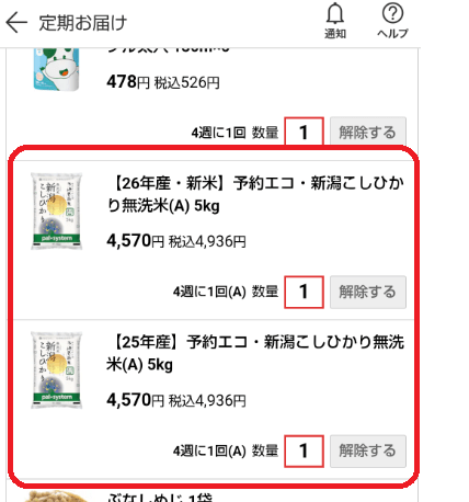 定期お届けの画面に「前年産」と「新年産」の2つが表示されています。重複して届きませんか?2026年3月31日 更新重複して届くことはありません。 新年産の予約受付中は、システムの都合上、前年産のデータと新年産の予約内容が並んで表示されます。 新年産の分は予約分として登録(表示)しているだけですのでご安心ください。